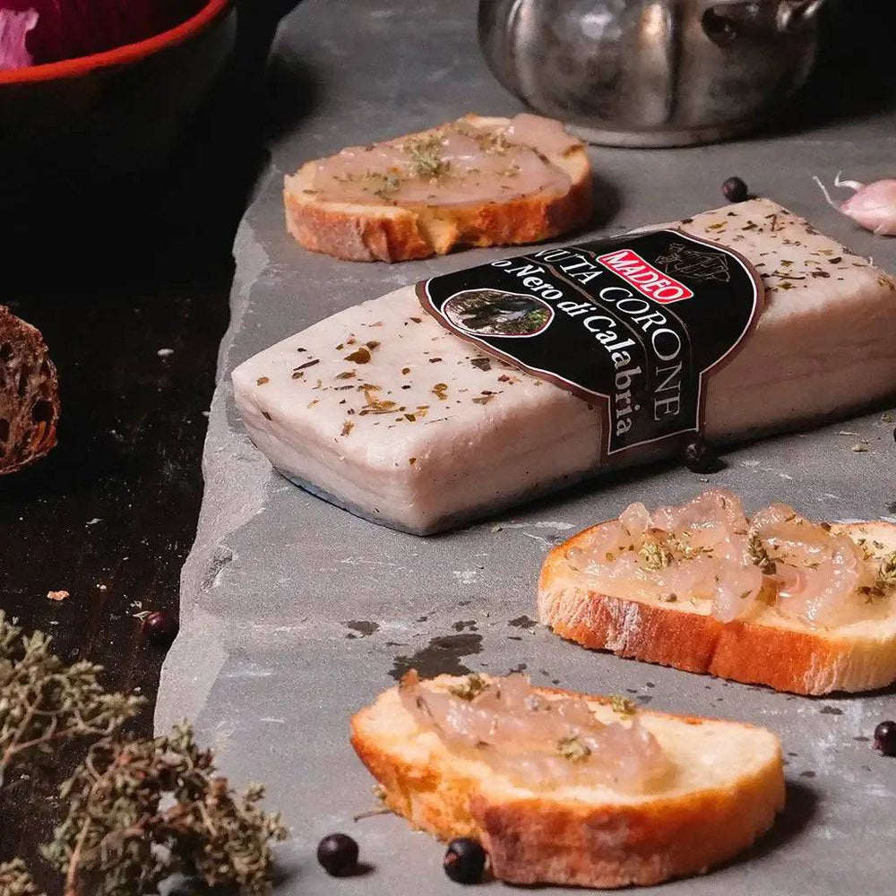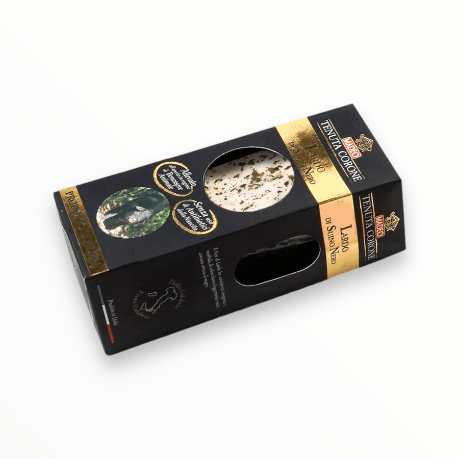 Lardo artigianale ottenuto da suini neri allevati all’aperto in Calabria. Preparato con salatura manuale e aromi naturali, viene stagionato per oltre 100 giorni per garantire morbidezza e gusto intenso. Perfetto da gustare con pane fresco, negli antipasti o per arricchire piatti tradizionali e gourmet.